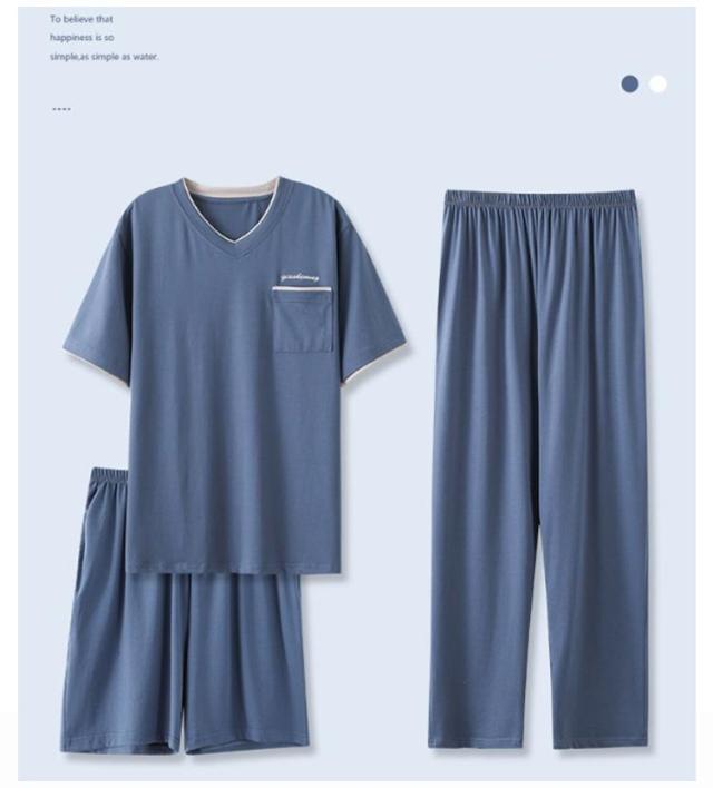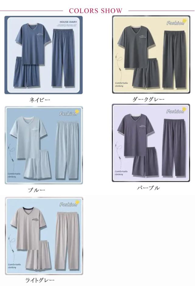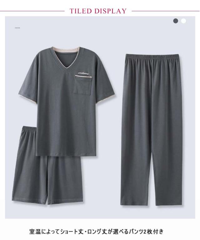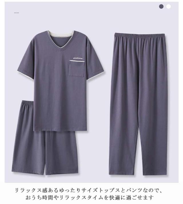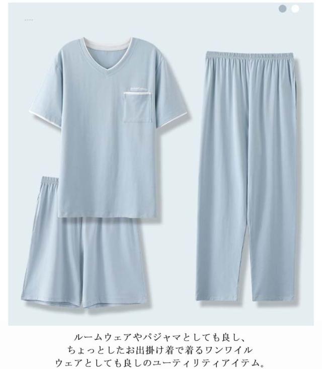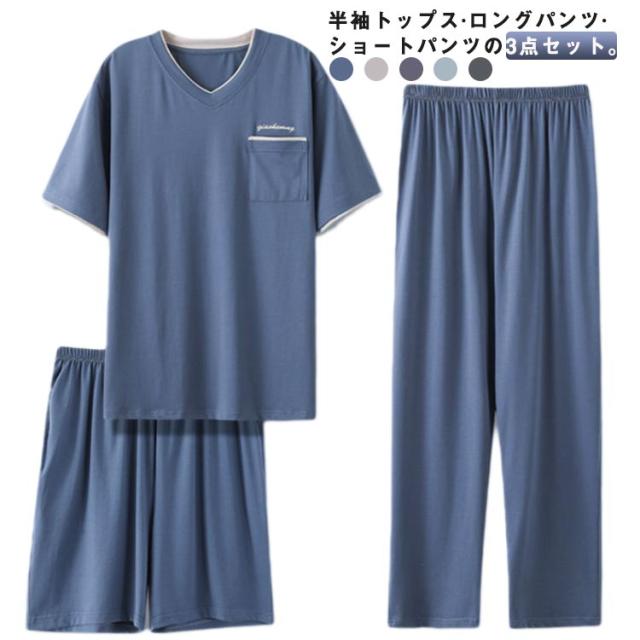 ロングパンツ パジャマ 半袖 セットアップ カットソー ショートパンツ 春 3点セット 半袖 ルームウェア パジャマ プルオーバー 夏 寝間着 メンズ 長ズボン ハーフパンツ ナイトウェア 無地 入院 薄手 シニア 高齢者 父の日 敬老の日 プレゼント ギフト 大きいサイズ