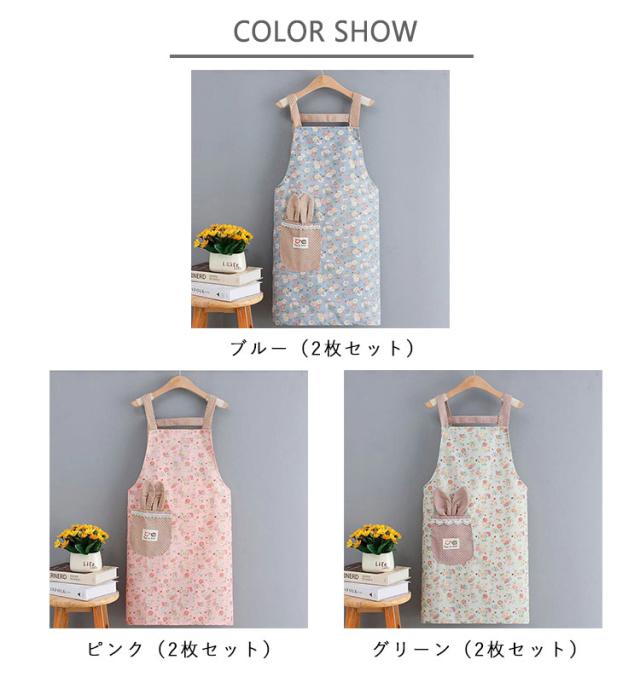 エプロン 2枚セットキッチンエプロン 花柄 調整可能な腰紐 エプロン 汚れ防止 女性用 エプロン 料理 ポケット付き 丈夫 家事 H型ストラップ エプロン うさ耳 おしゃれ キッチン ガーデニング 誕生日 プレゼント