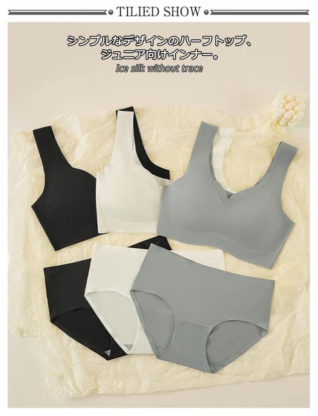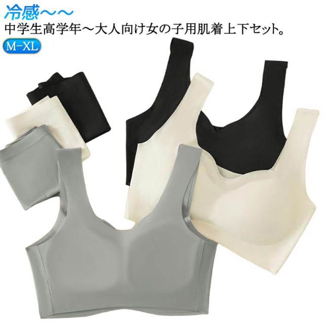 上下セット 子供 無地 大人 パッド付き 接触冷感 アンダーウェア 可愛い カップ付き ブラ 無地 キッズ インナー ノンワイヤー 涼しいブラ 夏 シームレス 冷感 女の子 パンツ 肌着 ブラジャー ジュニアブラ スポーツブラ 中学生 下着