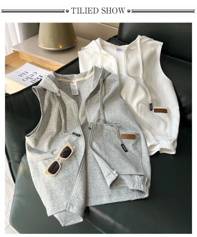 カジュアル レディース レイヤード タンクトップ スウェット ノースリーブ 無地 パーカーベスト Tシャツ ベスト 夏 ノースリーブパーカー フード付き 重ね着 ゆったり カジュアル アウター プルオーバー ベスト お出かけ 大きいサイズ ギフト 贈り物 春 秋