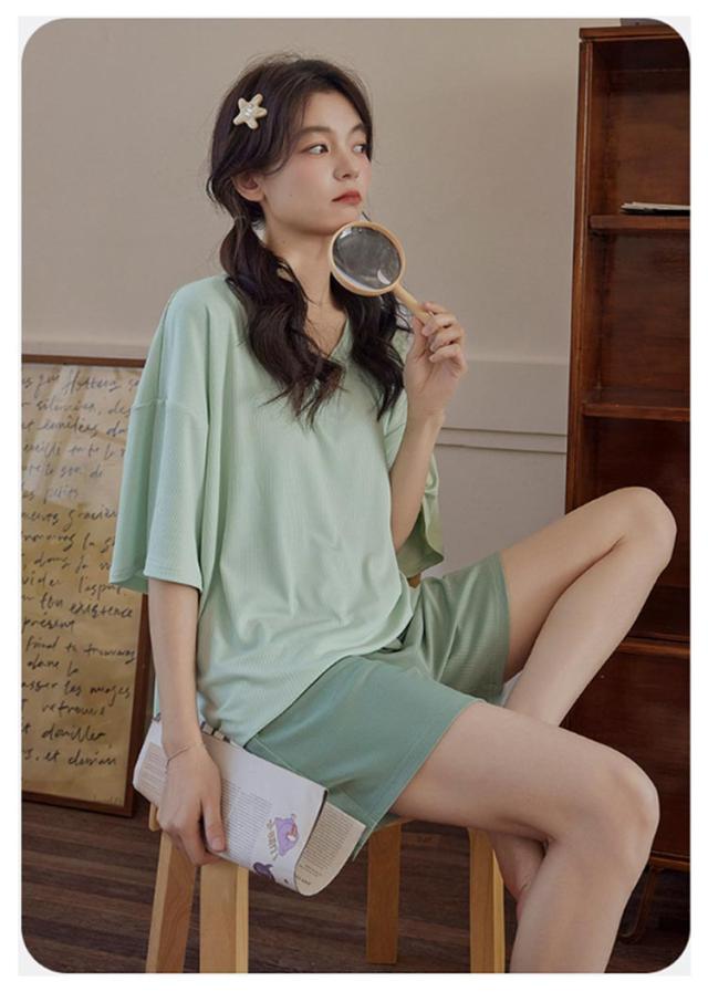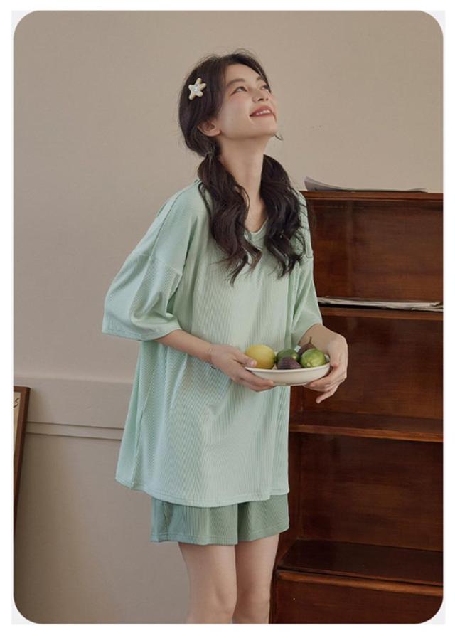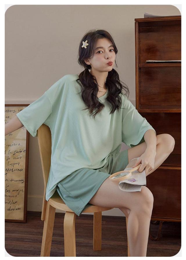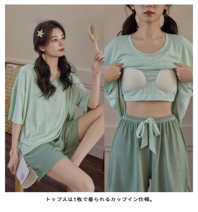 ナイトウェア パジャマ 上下セット カットソー 半袖 ルームウェア 無地 ショートパンツ カップ付き 接触冷感 ひんやり レディース 夏 かわいい 部屋着 薄手 涼しい パット付き 寝間着 半袖 プルオーバー ハーフパンツ ゆったり オーバーサイズ 学生 女子 女の子