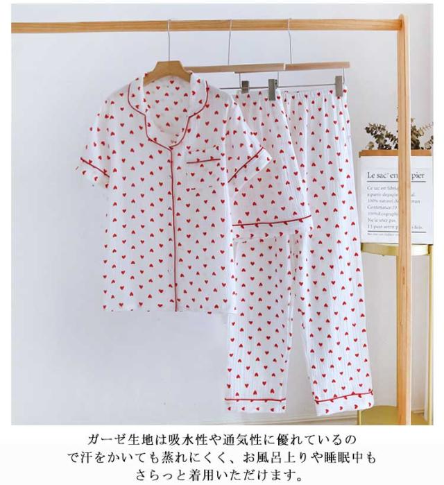| 風合い溢れるコットン100%のダブルガーゼルームウェアセットです。【3点セット】【ハート柄?花柄?ドット柄】 綿100%のダブルガーゼ生地を使用。ふんわり空気を含んだようなやわらかい肌あたりと、軽い着心地が特徴です。 ガーゼ生地は吸水性や通気性に優れているので汗をかいても蒸れにくく、お風呂上りや睡眠中もさらっと着用いただけます。 リラックス感あるゆったりサイズトップスとロングパンツなので、おうち時間やリラックスタイムを快適に過ごせます ウエストのゴムは、やわらかく伸びてやわらかく戻るため、締め付け感の少ない快適な着心地です。 ルームウェアやパジャマとしても良し、ちょっとしたお出掛け着で着るワンワイルウェアとしても良しのユーティリティアイテム。 | |
