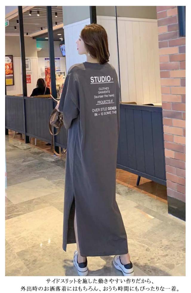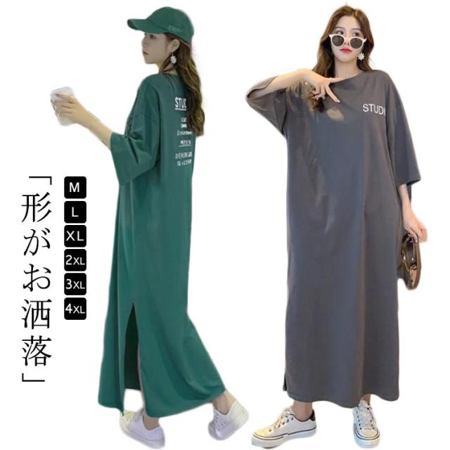 レディース ロング ワンピース Tシャツワンピース カットソー Tシャツワンピ ロングワンピース ロングワンピ ビッグ マキシワンピ ドルマン ワンピ マキシ きれいめ 体型カバー 大きいサイズ 春 夏 半袖 五分袖