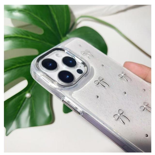 iphone14 16promax Plus ケース iphone11 iphone13 16plus ケース 15 iPhone16 iPhone15 ケース 12 iPhone16pro ケース iphone 透明 Pro Max 14 ケース ケース ミニリボン パール pro おしゃれ 韓国 可愛い クリアケース きらきら ラメ入り シルバー
