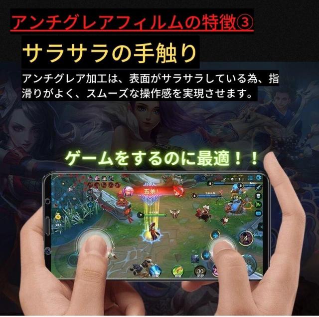 表面は反射防止タイプで、光の反射や映り込みを抑え、長時間画面を見たりしても、眼が疲れにくいです。更にサラサラ手触りで、指のすべりが滑らかでゲームに最適