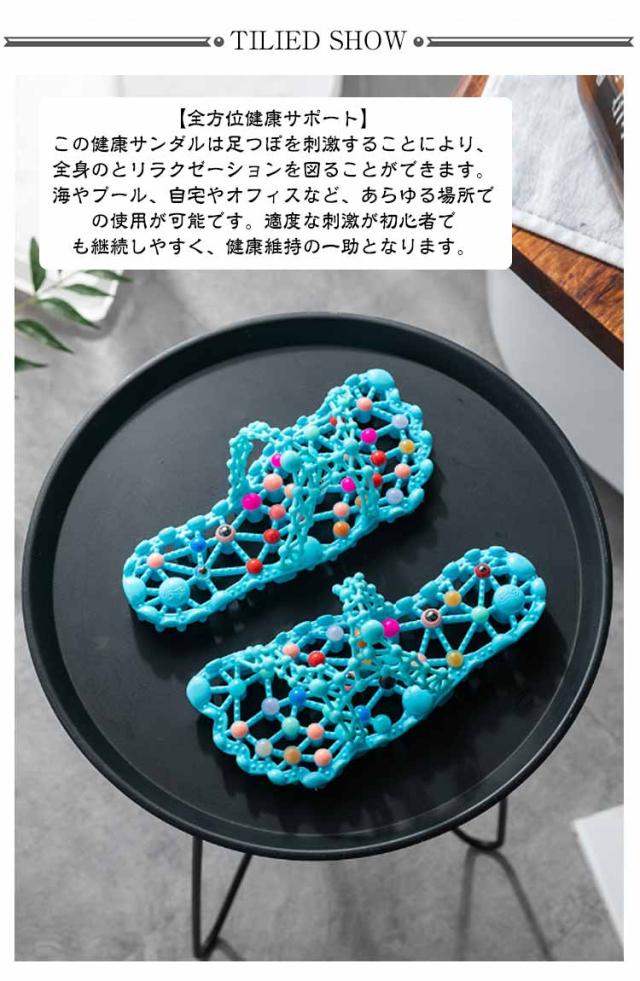 | 【全方位健康サポート】 この健康サンダルは足つぼを刺激することにより、全身のとリラクゼーションを図ることができます。海やプール、自宅やオフィスなど、あらゆる場所での使用が可能です。適度な刺激が初心者でも継続しやすく、健康維持の一助となります。 【快適性と機能性を両立】 耐水性と速乾性を備えた素材を使用しているため、水辺のアクティビティに最適です。脱いだ後の不快なニオイを残さず、丸洗い可能でいつでも清潔に保てます。また、ムレにくい設計は蒸し暑い夏場にもぴったりです。 【安全で快適な履き心地】 滑り止め加工が施されたこのサンダルは、滑りやすい場所でも安心して使用できます。柔らかいPVC素材が足を優しく包み込み、長時間履いても疲れにくい構造です。 【多機能サンダル】 屋内外を問わず活用できるこのサンダルは、日常の散歩から特別な水辺での活動まで、さまざまなシーンで役立ちます。耐水性に優れた素材を使用しており、ビーチやプールでの使用にも最適です。 | |
