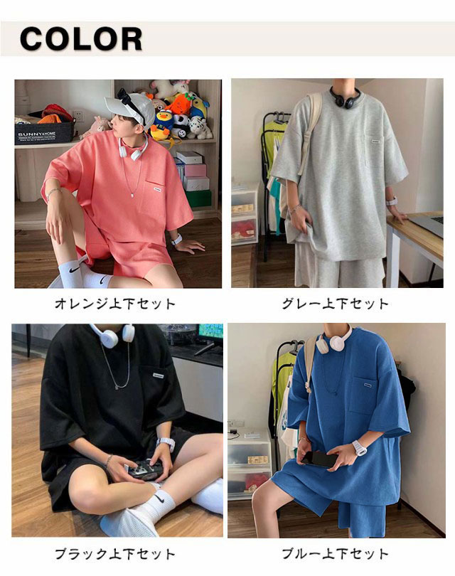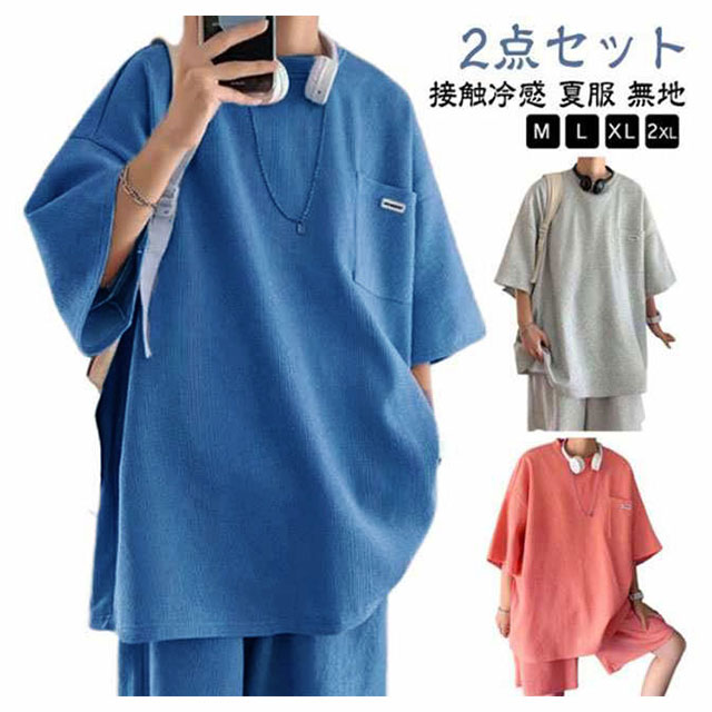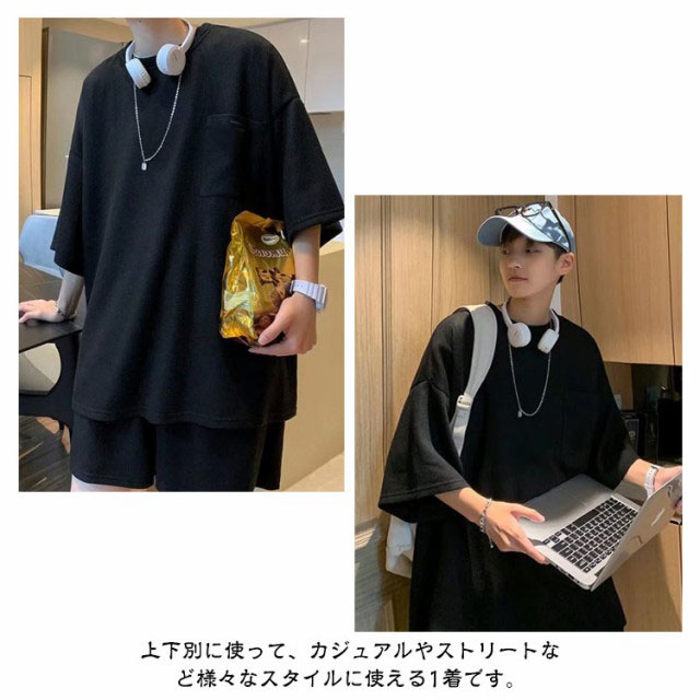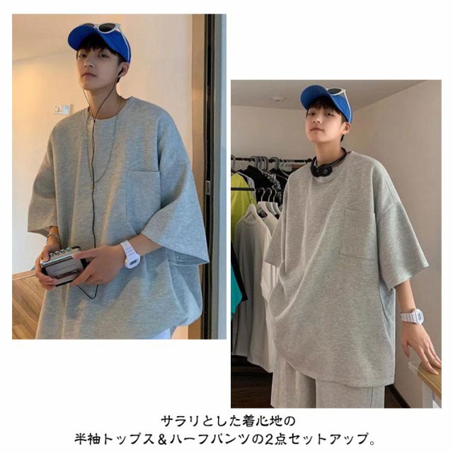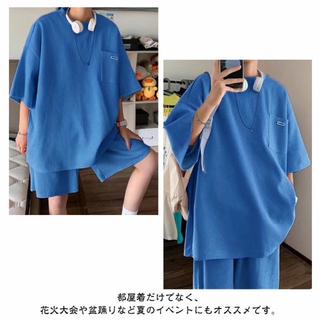 | M-2XL!サラリとした着心地の半袖トップス&ハーフパンツの2点セットアップ。 通気性に優れ、汗をかいても肌に張り付かず着心地バツグンです。 上下別に使って、カジュアルやストリートなど様々なスタイルに使える1着です。 夏のルームウェア、パジャマなどにもお使いいただけます。 部屋着だけでなく、花火大会や盆踊りなど夏のイベントにもオススメです。 | |