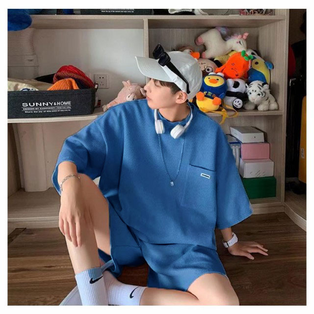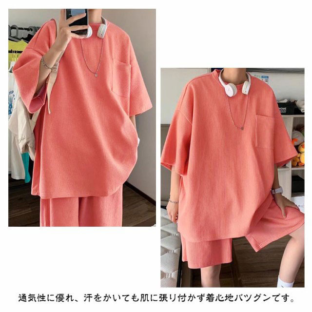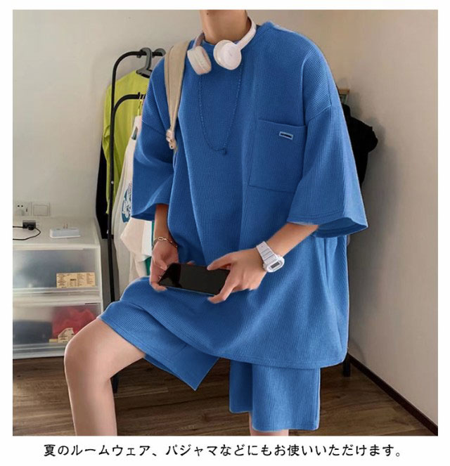 ジャージ リラックス ワッフル生地 メンズ スウェット セットアップ 夏 上下セット Tシャツ ショートパンツ 半袖 短パン 2点セット ハーフパンツ 部屋着 夏服 メンズファッション ルームウェア おしゃれ カジュアル ワッフル生地 涼しい 無地 ゆったり 大きいサイズ