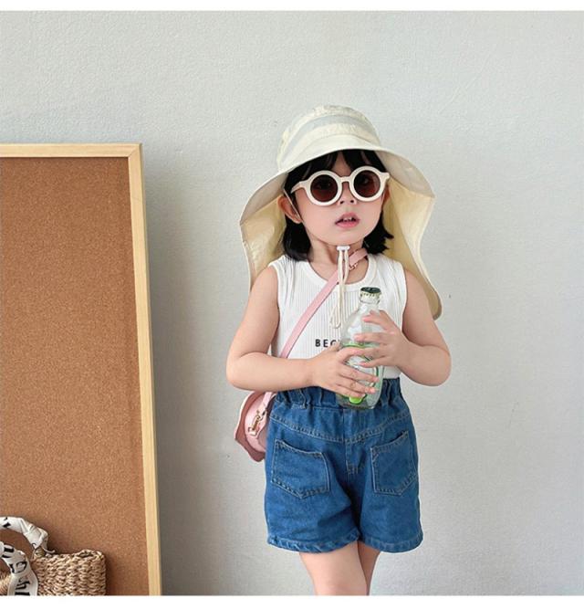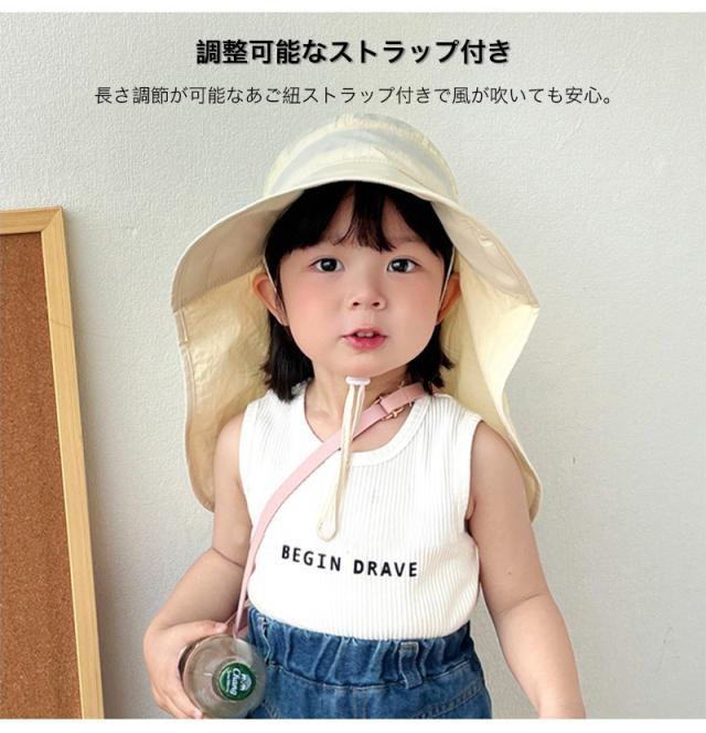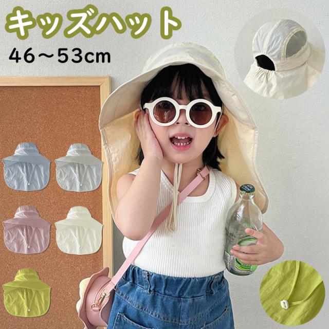 サンハット キッズ ベビー 日よけ 日除け 帽子 フラップ 子供 あご紐付 ビーチハット キッズ 紫外線カット 46〜53cm マリンハット 男の子 女の子 メッシュ 通気