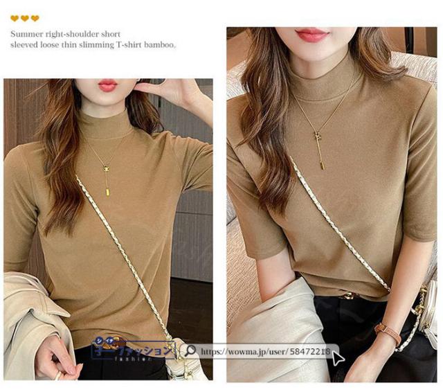 tシャツ カットソー 半袖 首のuv対策 夏新作 新作 レディース トップス タートルネック ハイネック 無地 ゆったり 体型カバー 二の腕 カバー 隠し おしゃれ シンプル 紫外線対策 日焼け対策 バレンタイン