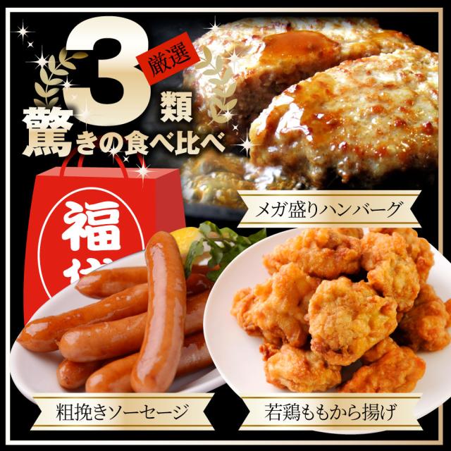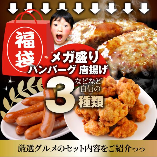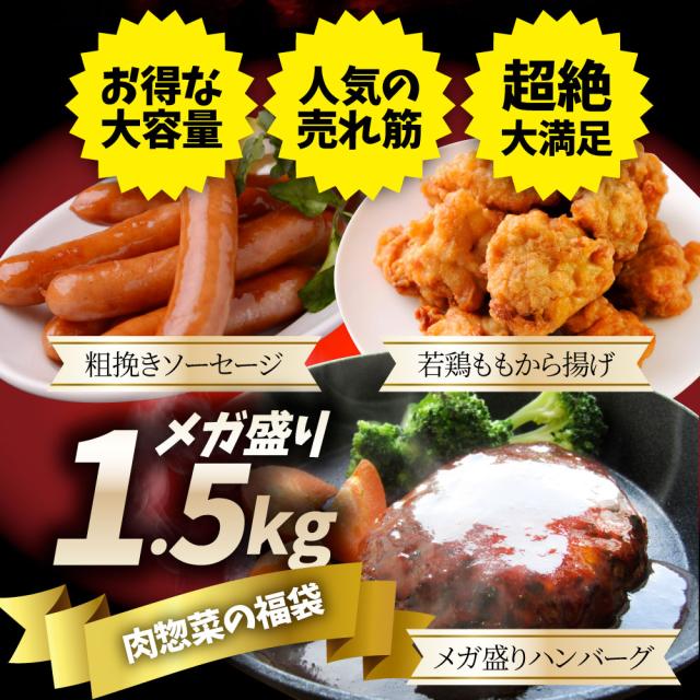 メガ盛り肉の福袋 絶品 惣菜 セット 総重量1.5kg ハンバーグ 唐揚げ ソーセージ 焼くだけ&レンジで簡単調理