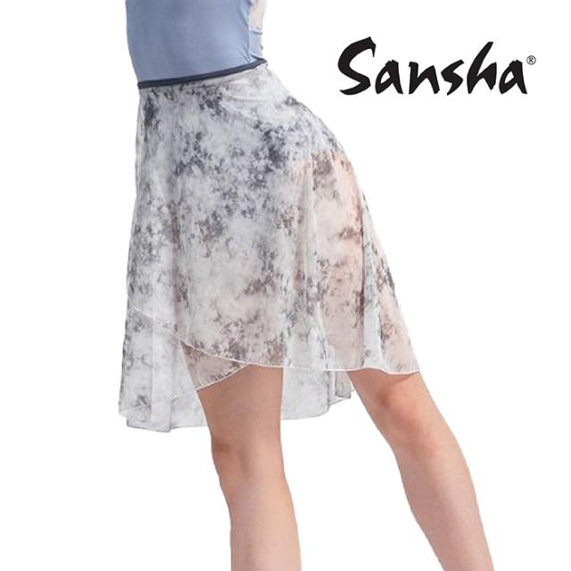 バレエ スカート【サンシャ】55BD2552P 巻きスカート バレエ ラップスカート ジュニア・大人 セミ ロング ひざ丈 透け感 シフォン おしゃれ レッスン 練習 着 ブルー グレー 後ろ下がり ニュアンス デザイン