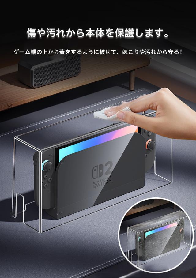 - switch2用のホコリよけとして購入しました。 大きさは問題ありませんでしたが、値段が高かったのと 前面と背面側が内側に反っている分、被せる時にドックに 少し当たりますが、使えなくはないので星-1です。