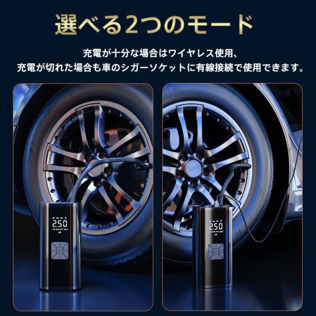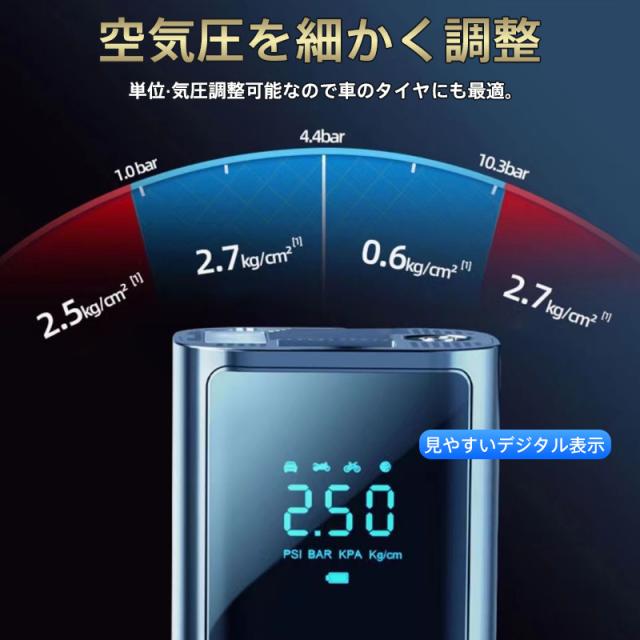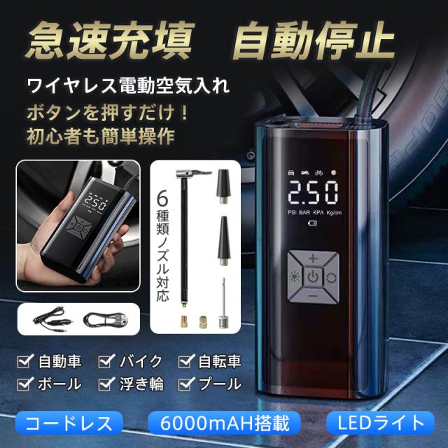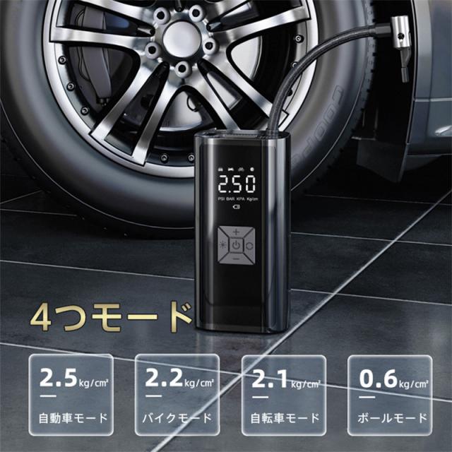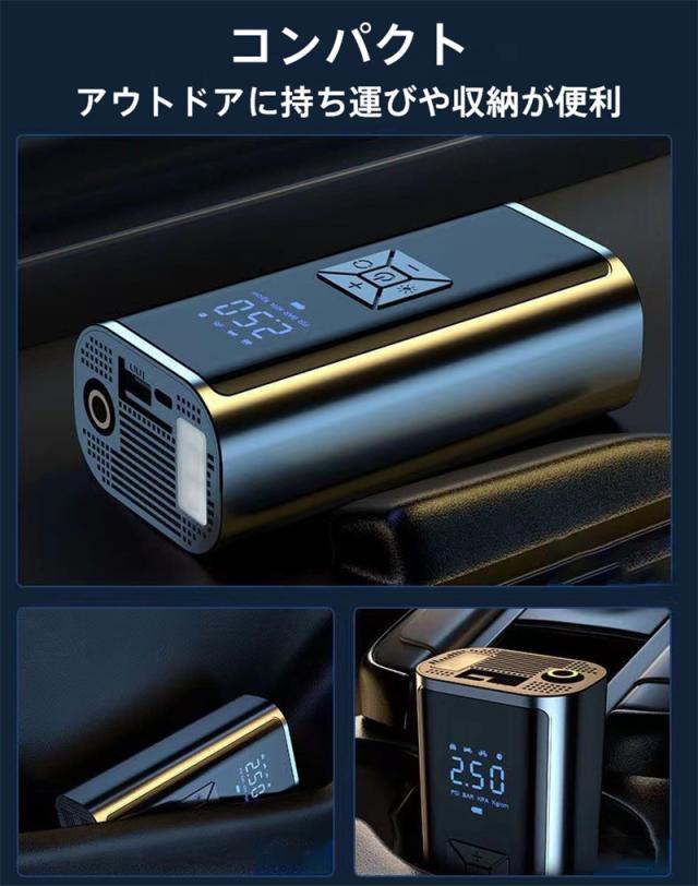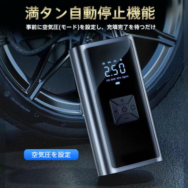 電動 空気入れ 自動車 自転車 充電式 急速充填 コードレス 車 バイク エアーポンプ 自動停止 タイヤ圧力検知 小型 浮き輪 ボ