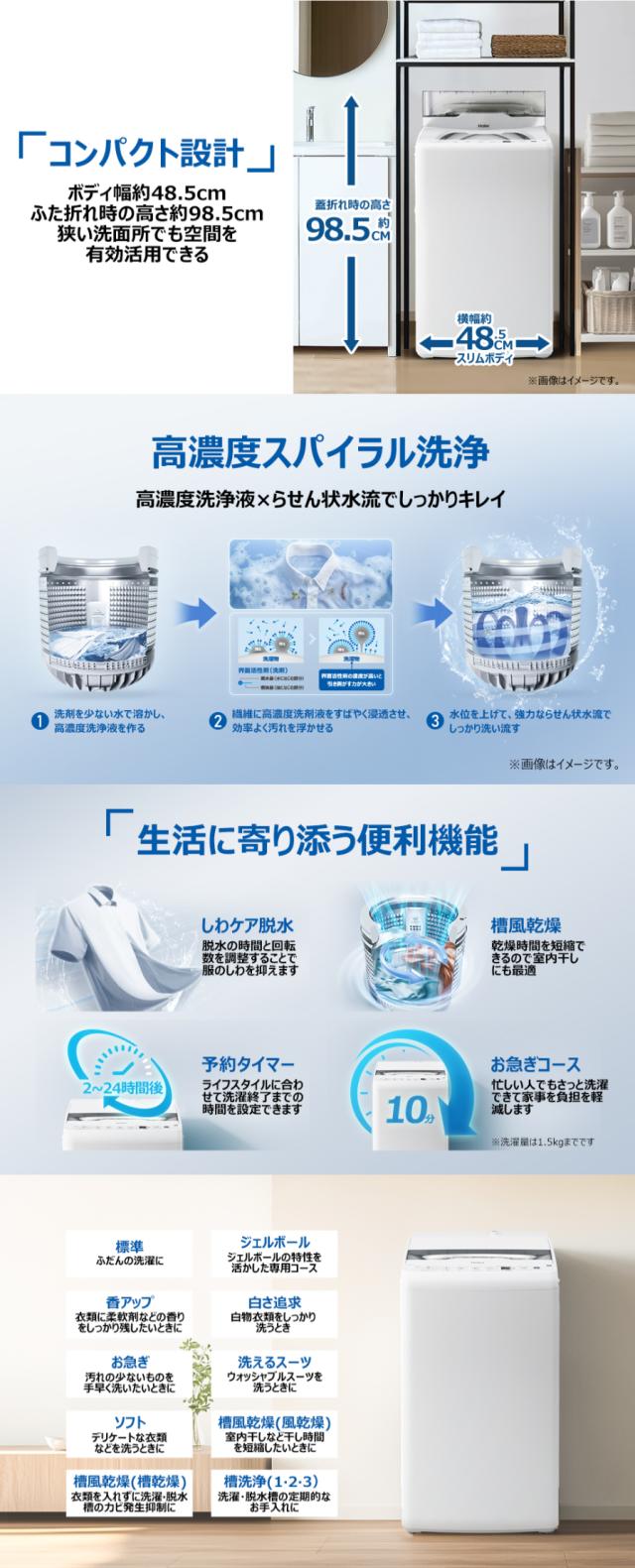 | 全自動洗濯機 縦型 洗濯6kg JW-HS61D W ホワイト「Bエリア限定配送」 スペック情報 | |