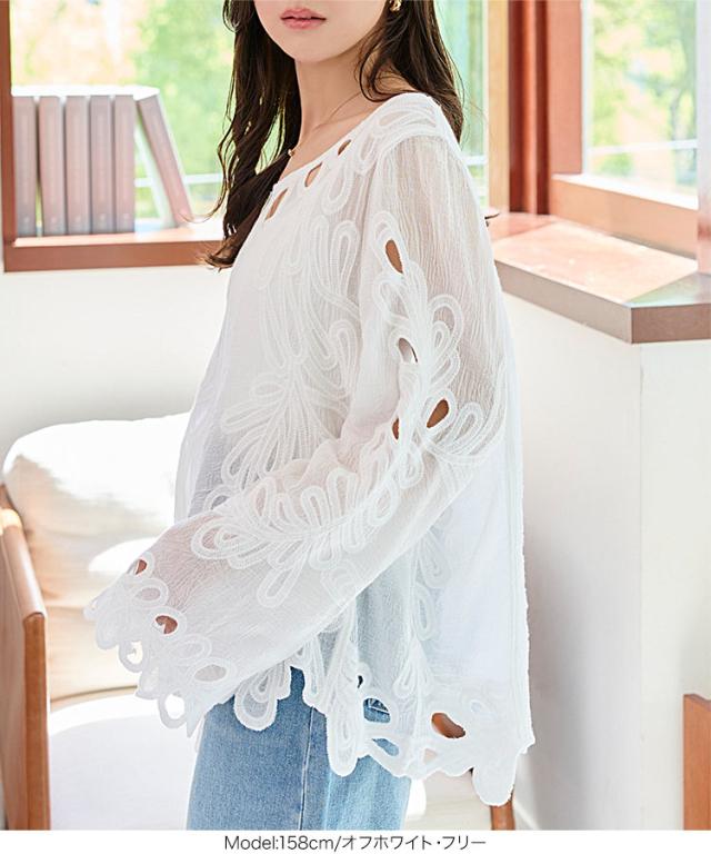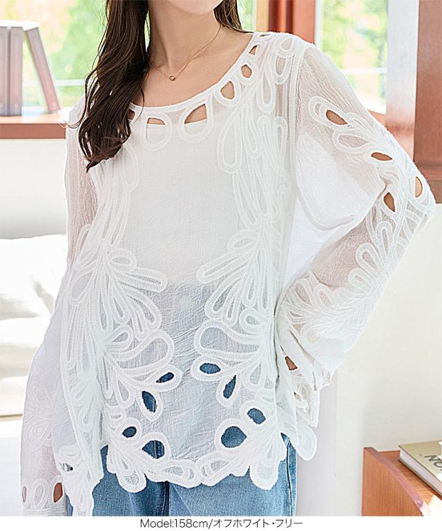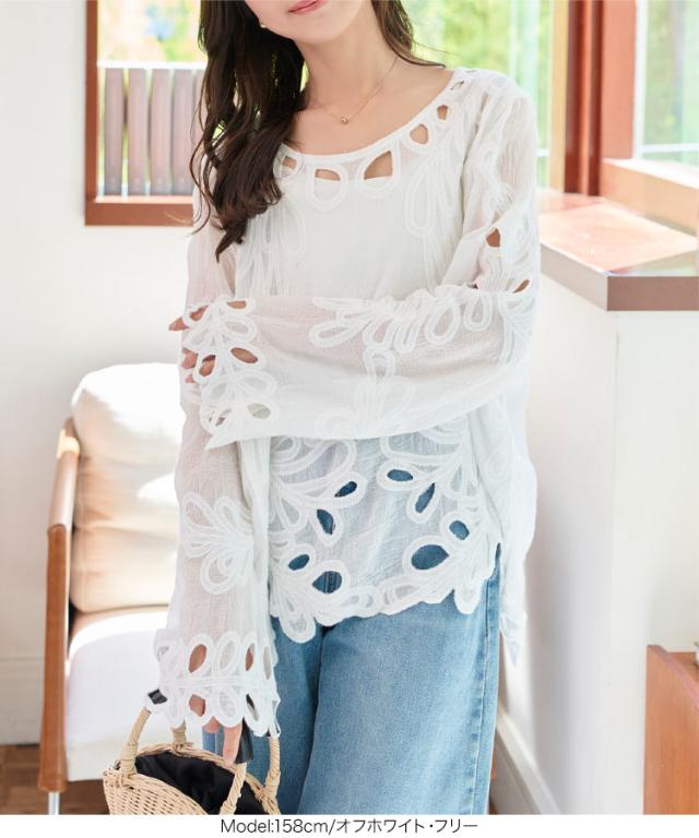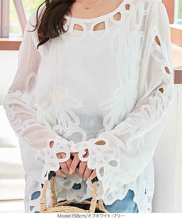 フラワーカットワークプルオーバー C7477 入荷済 レディース 20代 30代 40代 長袖 体型カバー 水着 レイヤード 花柄 重ね着 オーバーサイズ ゆったり ボヘミアン ボーホー カジュアル 大人 トレンド 流行 体系カバー 体形カバー ロング