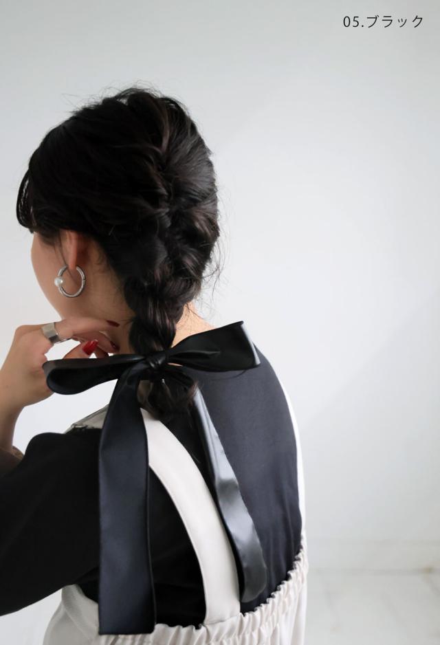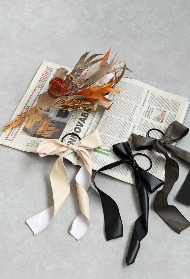 落ち着いた光沢をまとったリボン素材は、さっと結ぶだけで高見えする大人のヘアスタイルを叶えてくれます。