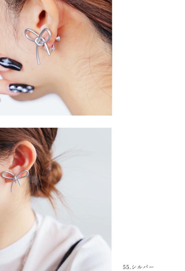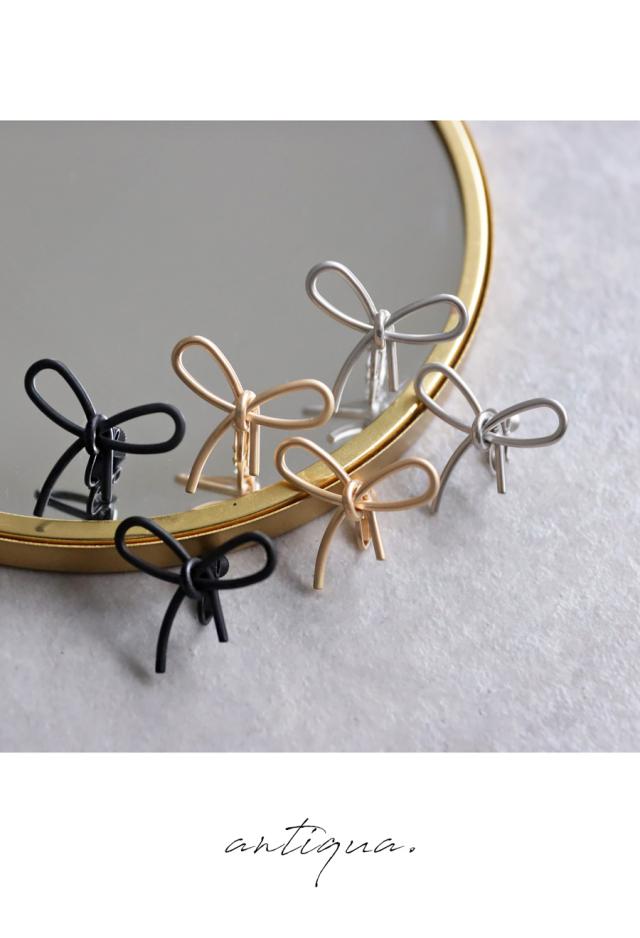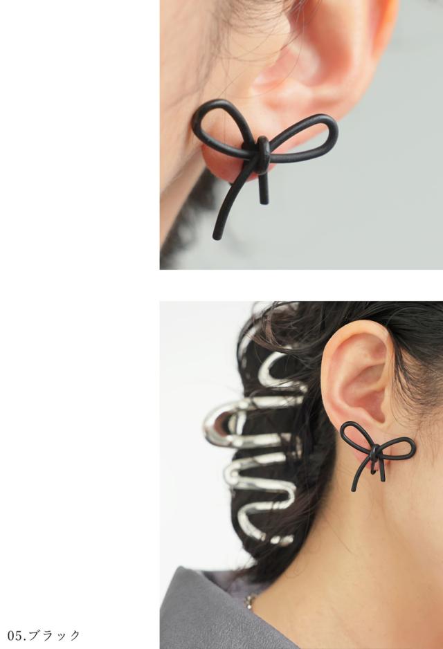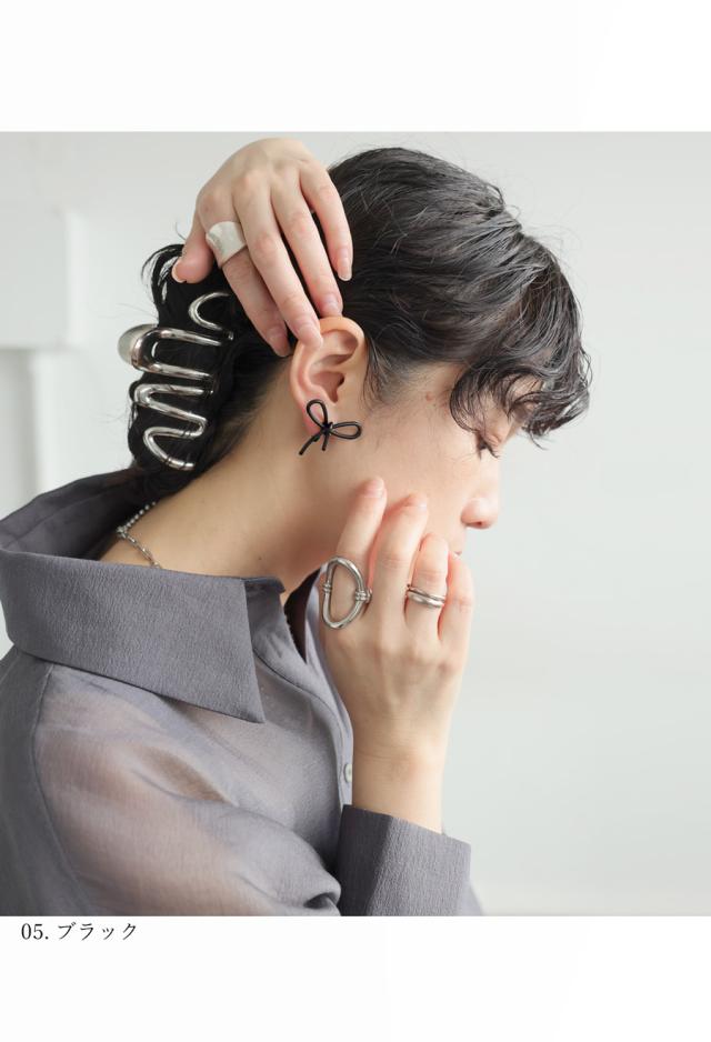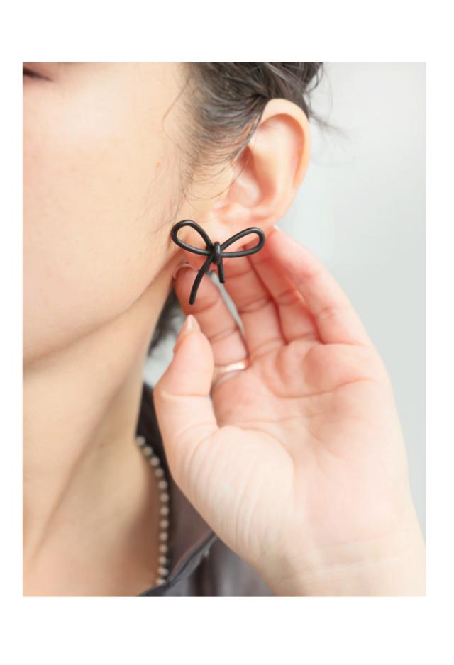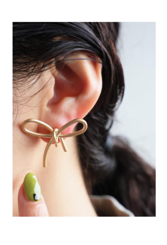 ほどよい甘さが魅力のリボンイヤリングが、マットな質感で洗練された印象に。