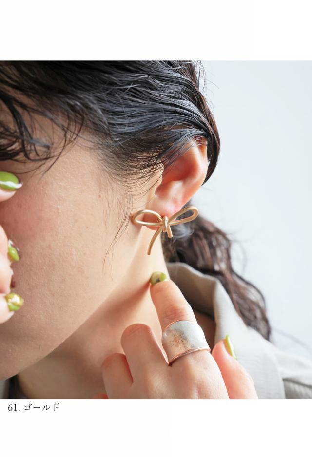 aj-01877 リボン アクセサリー アクセ ニッケルフリー アレルギー対応 金属アレルギー 低アレルギー 小ぶり ネジバネ式 軽い シンプル 上品 デイリー 両耳 プレゼント 真鍮