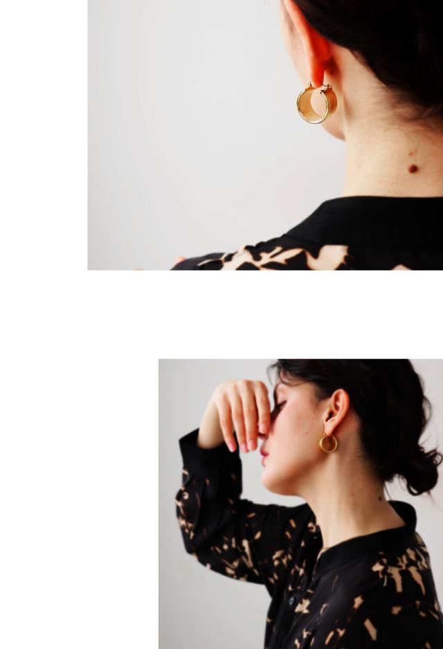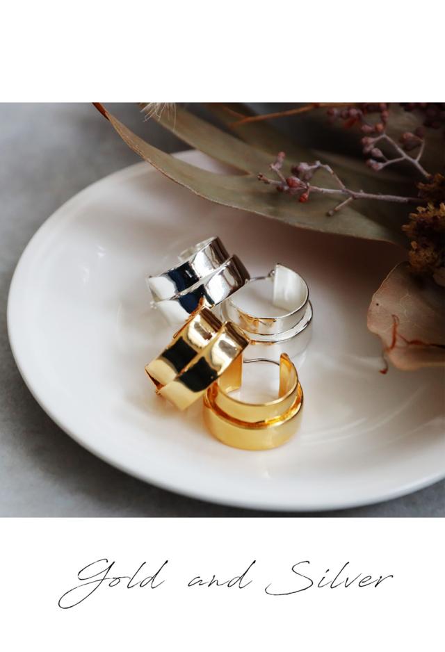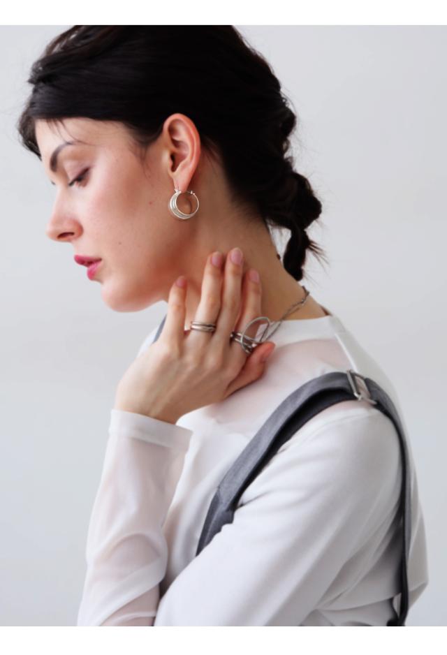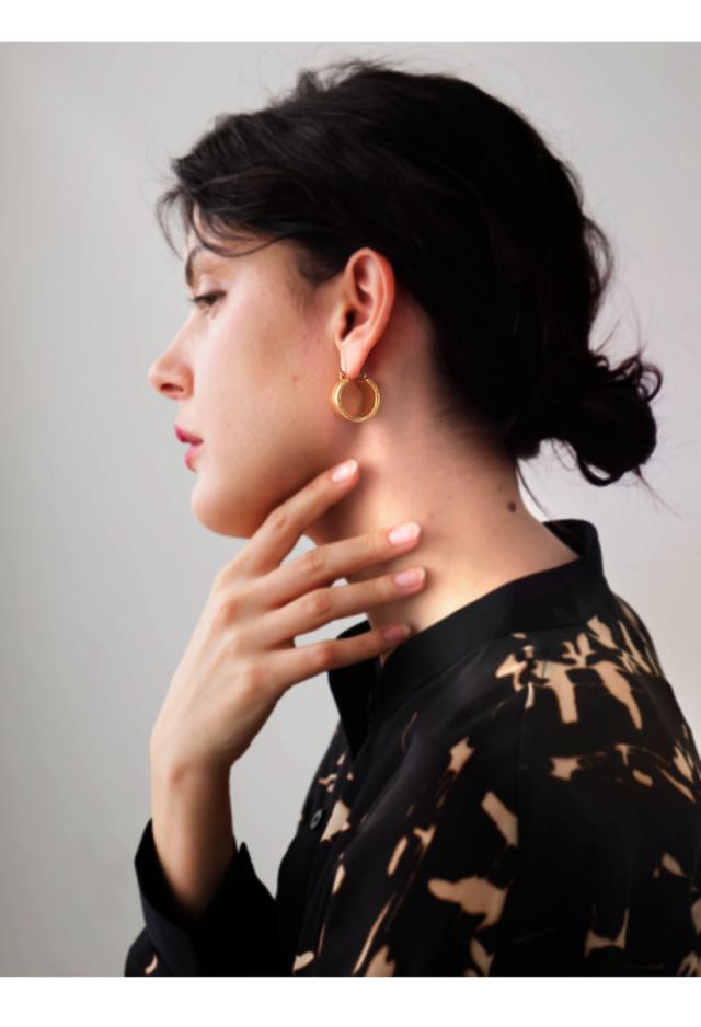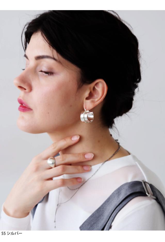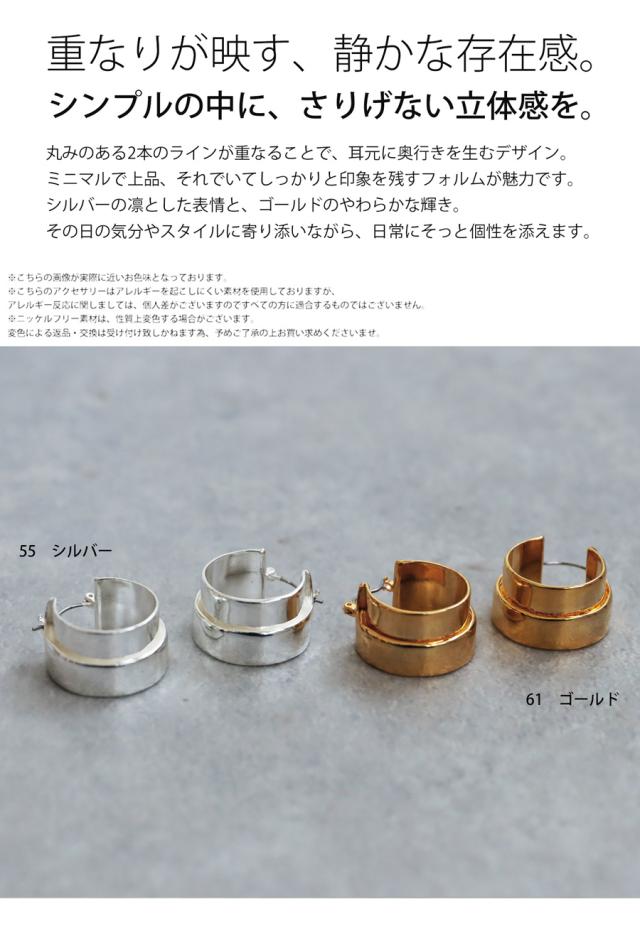 重なり合う2本のラインが生む立体感が、耳元に静かな存在感を与えるデザインピアスです。