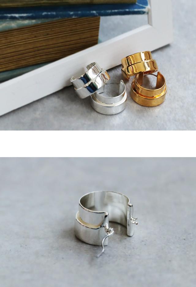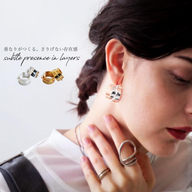 pj-01370 レイヤード風ピアス 金属アレルギー対応 キャッチレス ニッケルフリー ゴールド シルバー 個性派 ミニマル シンプル 重なりデザイン 軽い 軽量 プレゼント