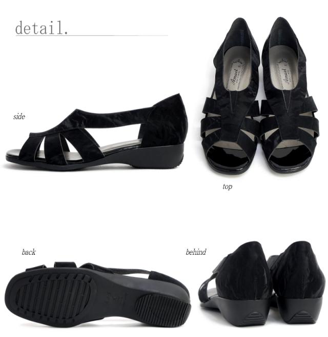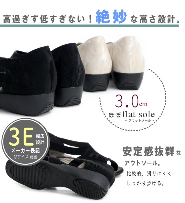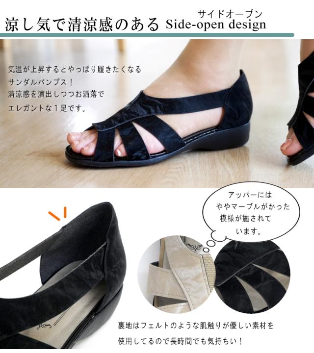 AC アミュエルコンセプト オープントゥサンダル レディース パンプス サイドオープン 清涼感 日本製 スリットゴム スクエア モールド フラットソール 軽い オフィス 結婚式 卒入学 仕事 3e