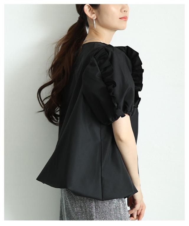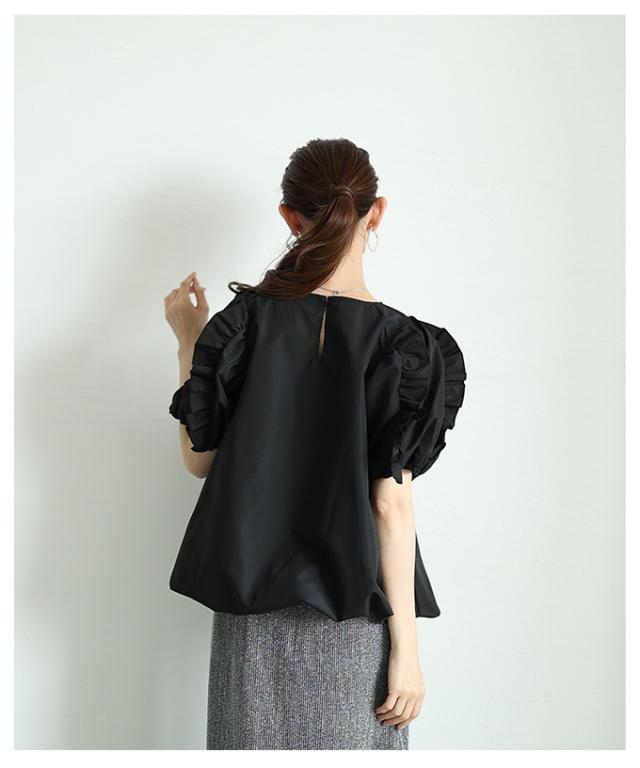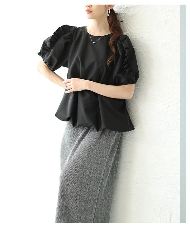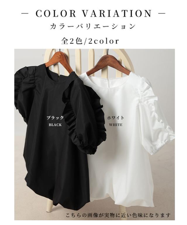 春新作 フリルパフスリーブバルーンブラウス レディース ファッション トップス シャツ プルオーバー ブラック 黒 ホワイト 白 大人可愛い 40代 レディースファッション 50代女性 ファッション 60代 ミセスファッション サワアラモード sawaalamode otona almam-195161