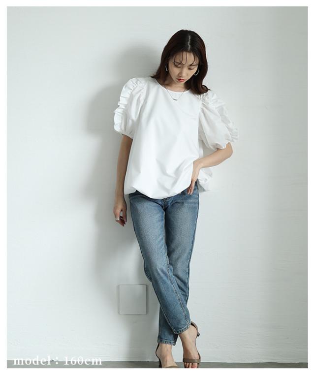 特徴: パフスリーブ フリル バルーン裾 Uネック