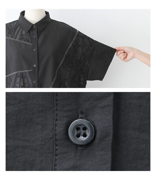 ■デザイン 表面感のある柄シアー生地と無地シアー生地をランダムに切り替えたデザインシャツ。表側には微配色のステッチを施し、コーデのポイントに。肩、アームホール、脇は布端のほつれを防ぐパイピング始末で、着用時にチクチク感を感じにくいよう工夫されています。ゆるっとしたサイズ感で、ラフな着用が叶います。 ■コーディネート デザイン性がありながらもシンプルなので、様々なボトムスに合わせやすいアイテムです。シンプルなボトムスと合わせて程よく綺麗めな印象、デザイン性のあるボトムスと合わせてモードな印象、サンダルやスニーカーと合わせることでカジュアルダウンさせたこなれ感のある印象に。一枚での着用はもちろん、羽織としても活躍します。 ■素材 表面感のあるシアー生地で、風合い感じる生地感。程よい透け感と薄手の生地感で、暑さを感じる時期の着用に最適です。 ■製品についての注意書き 肌刺激につきまして こちらの商品は、 お肌に刺激を感じる場合がございます。 ご了承の上、ご購入いただきますようお願いいたします。 |