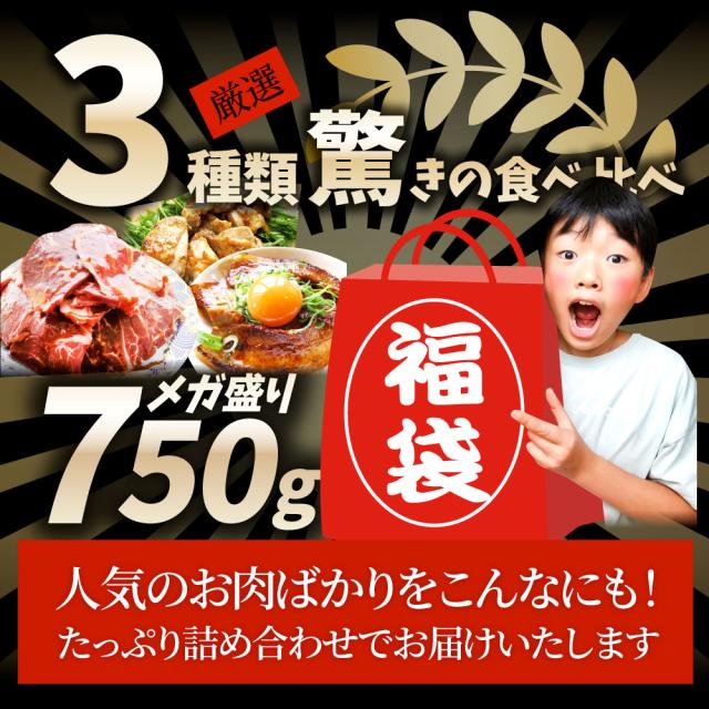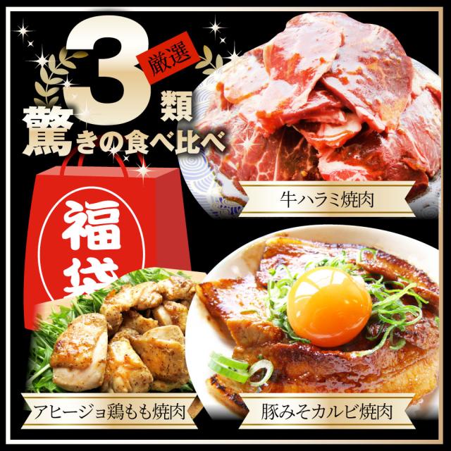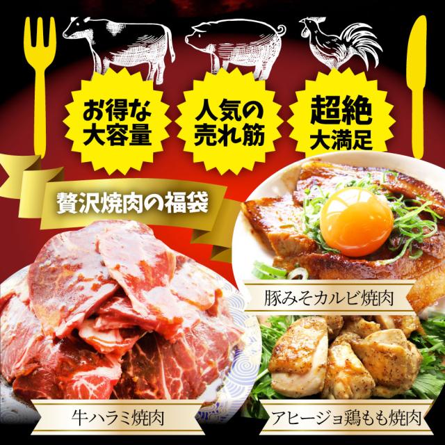メガ盛り肉の福袋 絶品 焼肉 セット 総重量750g 牛 ハラミ 焼肉 & 豚味噌 カルビ 焼肉 牛肉 焼くだけ&レンジで簡単調理