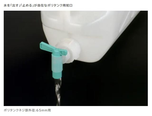 水を出したり、止めたりできるポリタンク用蛇口コックです。タンクネジ部外径65mm用。