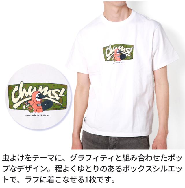 Tシャツ メンズ 半袖 CHUMS チャムス プリントTシャツ 虫よけ加工 Tシャツ アンチバグチャムスグラフィティ アウトドア ブランド カジュアル アメカジ グラフィック プリント 夏 キャンプ コットン 綿100% 刺繍 ロゴ CH01-2507