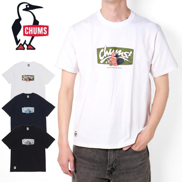 Tシャツ メンズ 半袖 CHUMS チャムス プリントTシャツ 虫よけ加工 Tシャツ アンチバグチャムスグラフィティ アウトドア ブランド カジュアル アメカジ グラフィック プリント 夏 キャンプ コットン 綿100% 刺繍 ロゴ CH01-2507