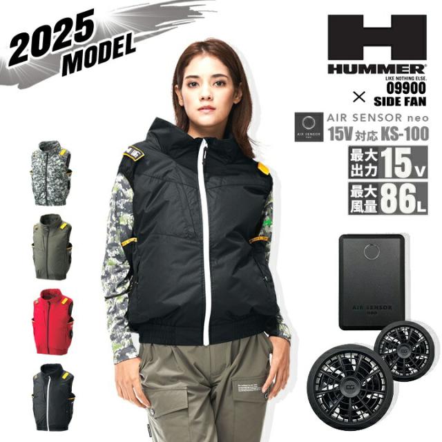 【即日発送】HUMMER ハマー 2025年 空調ウェア サイドファン ベスト 9900 バッテリー&ファンセット クロダルマ KS-100 エアーセンサー 遮熱効果 熱中症対策 撥水加工 男女兼用 フルハーネス フード付き 空調作業服 ファン付きウェア
