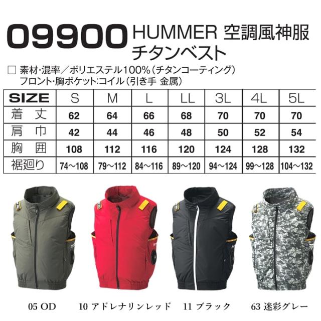 HUMMER フルハーネス対応 サイドファン仕様 空調風神服 ベスト