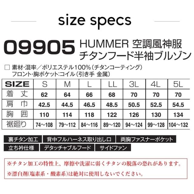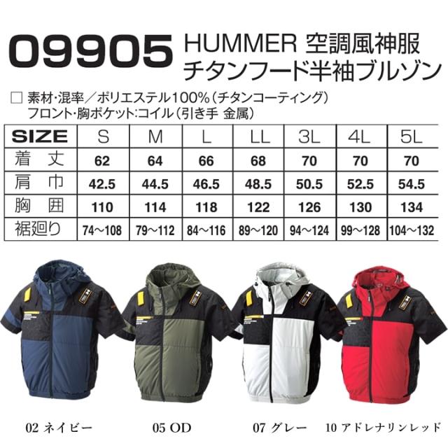 【即日発送】HUMMER 空調風神服 2025年 空調ウェア サイドファン 半袖ジャンバー 【服のみ】空調風神服 ファン対応 9905 ハマー 男女兼用 熱中症対策 撥水加工 アウトドア スポーツ 作業着 作業服 電動ファン対応作業服 アタックベース