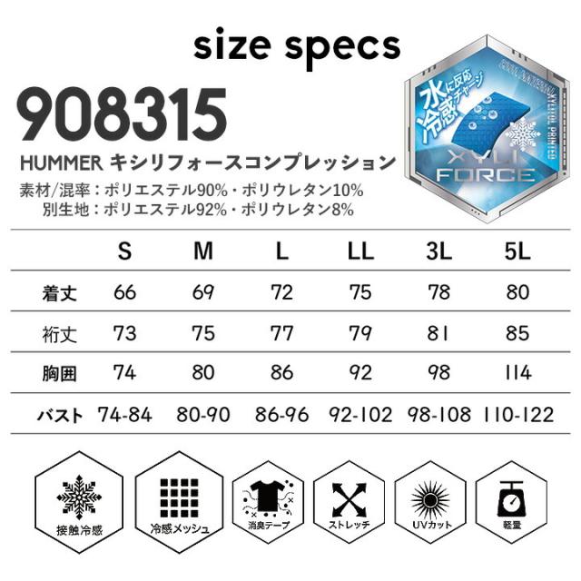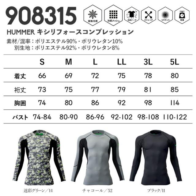 【即日発送】インナー コンプレッション HUMMER ハマー キシリフォース 908315 接触冷感 冷感メッシュ キシリトール 消臭テープ 春夏 移動着 作業服 作業着 スポーツ アウトドア 自転車 アタックベース