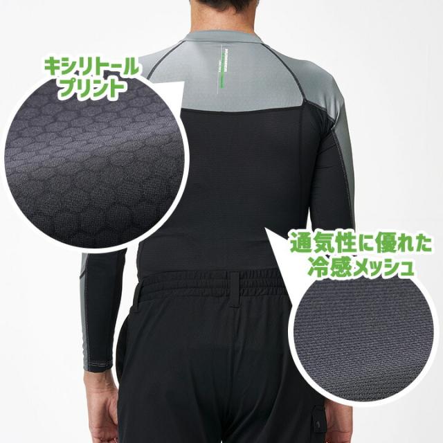 | 説明 特徴 | ひんやり冷たい接触冷感生地を使用したインナーシャツ。 熱のこもりやすい部分は通気性のいい冷感メッシュが風を通し涼しく快適。 水分と反応し吸熱により作用する冷感キシリトール生地も組み合わされ極冷感を実現。 優れたストレッチ性があらゆる動きもサポート。 UVカット・消臭テープを備え気になる匂いも抑え強い日差しや汗ばむ季節に最適。 高機能性とスタイリッシュなデザインはスポーツやワークシーンなどのほかアウトドアにも手放せない極冷感インナーです。 【特徴】 ● 接触冷感・冷感メッシュ ● キシリトールプリント ● ストレッチ ● 消臭テープ |