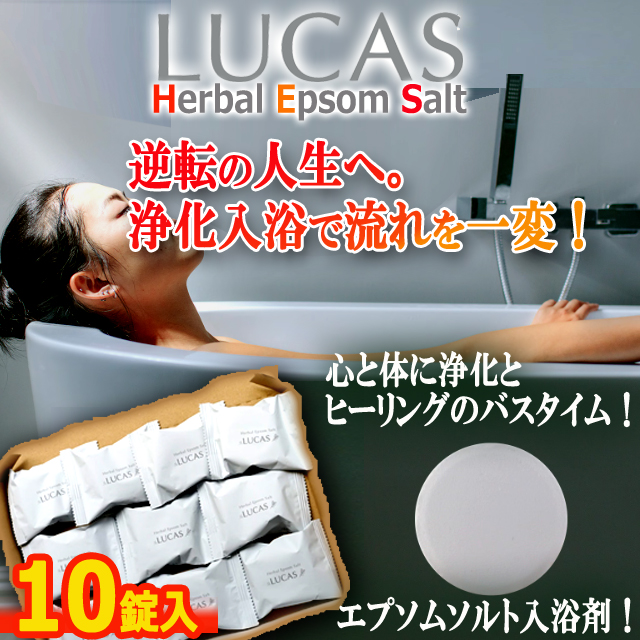 10錠 LUCASルカス ホワイトセージ&水晶由来ケイ素配合浄化用入浴剤 ハーバルエプソムソルト 10錠入 リフレッシュ バスタイム スピリチュアル