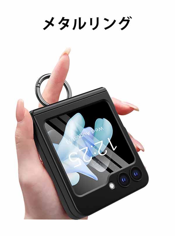 Samsung Galaxy Z Flip7 ケース 耐衝撃 カバー 折りたたみ型 PC素材 リング付き 衝撃吸収 軽量 外側のディスプレイ保護フィルム付き 持ちやすい 実用 人気 便利性の高い おすすめ おしゃれ サムスン ギャラクシー Z フリップ7 ケース 背面カバー CASE