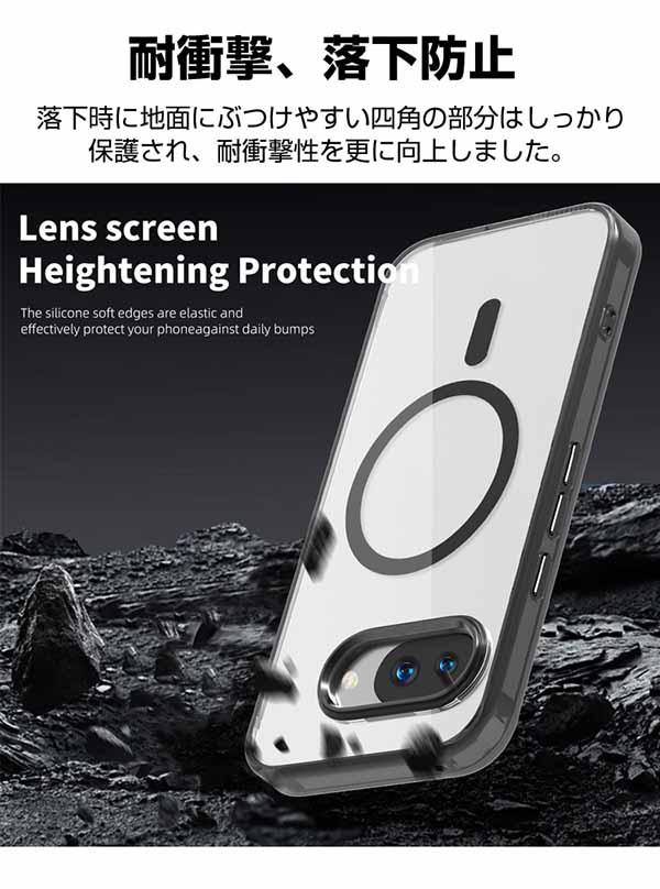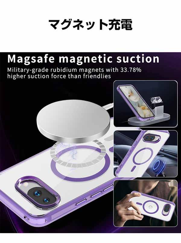 Google Pixel 9a ケース 耐衝撃 透明の 背面カバー グーグル ピクセル 9a 保護ケース タフで頑丈 落下防止 TPU+PC素材 マグネット吸引機能付き おしゃれ カッコいい 人気 衝撃に強い スマホ ケース CASE 背面カバー CASE 強化ガラス付き