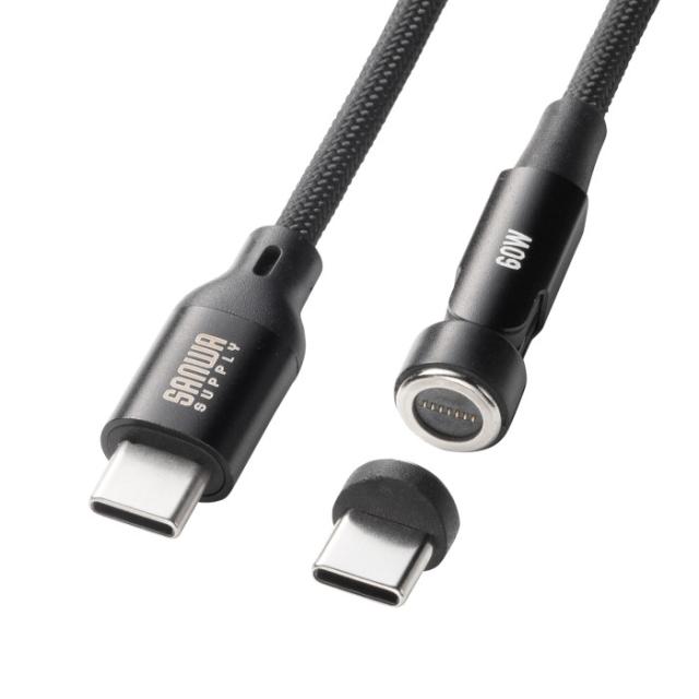 即納 代引不可 USB2.0 Type-Cケーブル(マグネットコネクタ・540度回転・PD60W・1m) サンワサプライ KU-CCP60MG10BK