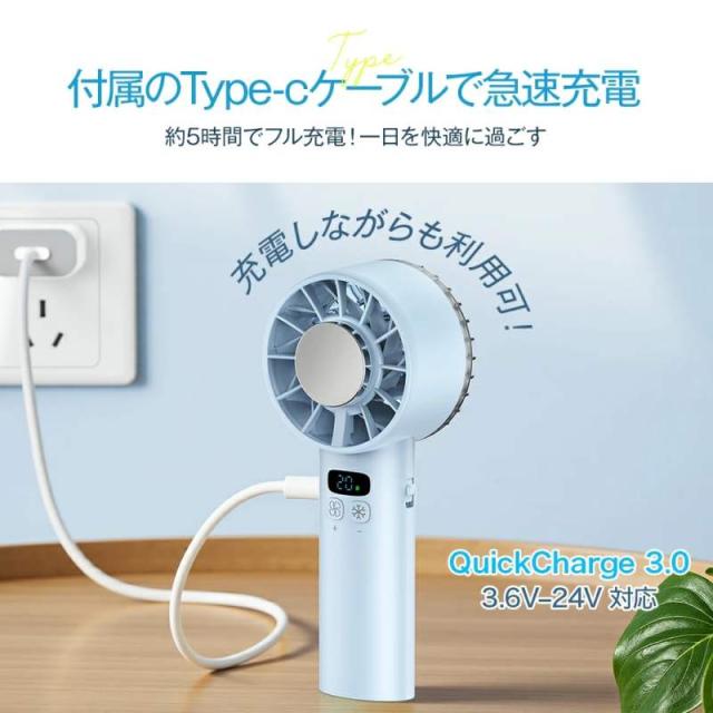 【100段階調整】冷却プレート ハンディファン -18℃速冷 手持ち扇風機 30H連続使用 マイナスイオン 小型扇風機 瞬間冷却 大風量 静音 卓上扇風機