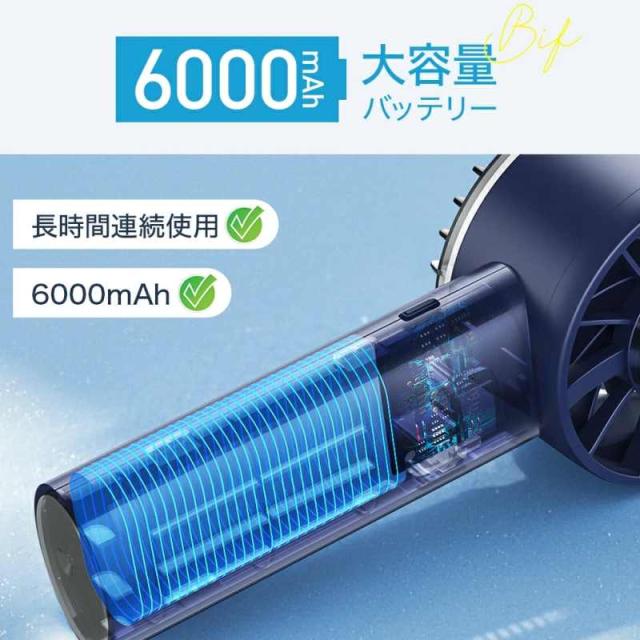 手持ち扇風機は高速三相ブラシレスモーターを搭載し、最大風速は通常の扇風機の2倍、毎分16000回転です。最大風速は10m/sです。三相ブラシレスモーターと6000mAhバッテリーの組み合わせにより、風速、パワー、耐久性が大幅に向上します。