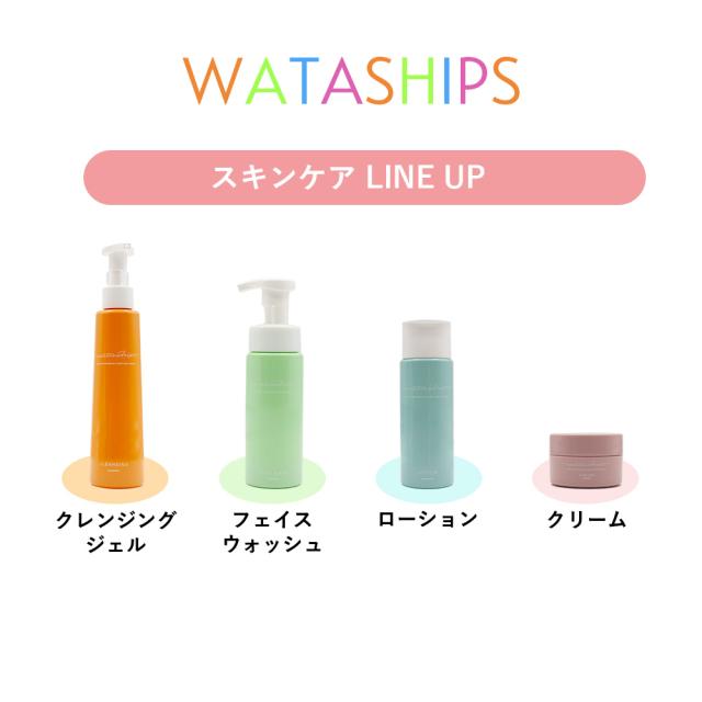 SOIS ワタシップス 4点セット クレンジングジェル200ml /フェイスウォッシュ(洗顔フォーム)200ml/ ローション(化粧水)150ml /保湿クリーム30g