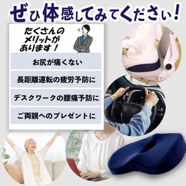 低反発素材がお尻に優しいデスクワークや運転に最適。