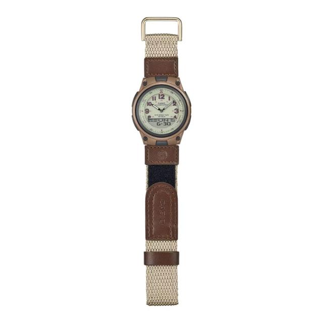 正規品 カシオ 腕時計 メンズ 父の日 アナデジ 10年電池 防水 ワールドタイム アラーム付 おしゃれ カジュアル ミリタリー調 ナイロンベルト カーキ 男性 ギフトにも人気 プレゼント
