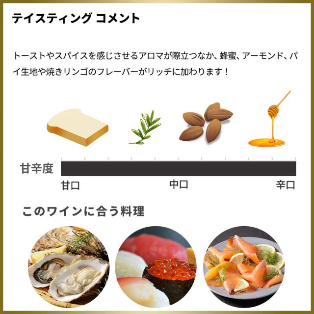 ![]() ■ぶどう品種:シャルドネ50~60%、ピノ・ノワール30~40%、ピノ・ムニエ10~20% ■発酵・熟成:瓶内二次発酵後、3年以上の熟成 ■土壌:白亜質土壌 ■残糖:9.5g/L ■収穫:手摘み100% 英国産スパークリングワインの最高峰!英国の歴史を刻むナイティンバーが誇るスパークリングワイン!ニール・ベケット氏の「死ぬ前に飲むべき1001ワイン」にも登場! 目を奪う美しく優しいゴールデンカラーときめ細やかな泡立ち!長期熟成期間 (通常3年以上) を経て、トーストやスパイスを感じさせるアロマが際立つなか、蜂蜜、アーモンド、パイ生地や焼きリンゴのフレーバーがリッチに加わります! そんな複雑味のある味わいに、凝縮感と繊細さ、そして長い余韻が続く、調和のとれた上質でエレガントな高級スパークリングワイン!フードペアリングはスモークサーモン、牡蠣など貝類、寿司、アスパラガスなどとの相性バッチリ!大人気高級スパークリングが限定で正規品で少量入荷! |
