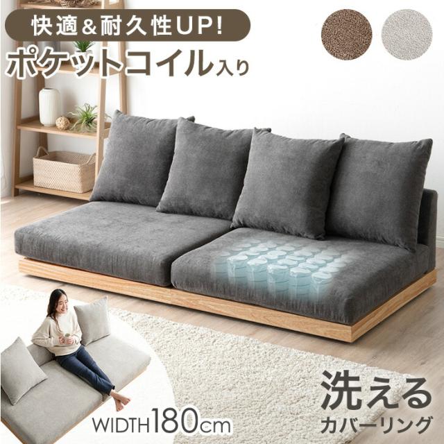 【正午〜P5%還元】 ヴィンテージ フロアソファ 幅180cm 3人掛け レザー調 ソファ ウッドフレーム ローソファ ソファー ローソファー フロアソファー ソファベッド フラットソファ sofa 2人掛け 天然木 木 木製 木製フレーム 北欧 レトロ おしゃれ
