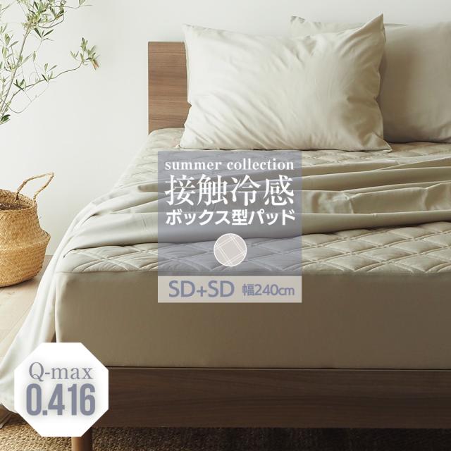 接触冷感 パッド一体型 ボックスシーツ ひんやり ファミリーサイズ SD+SD 240cm×195cm マットレスカバー 一体型 敷きパッド BP17 エコテックス サマーコレクション